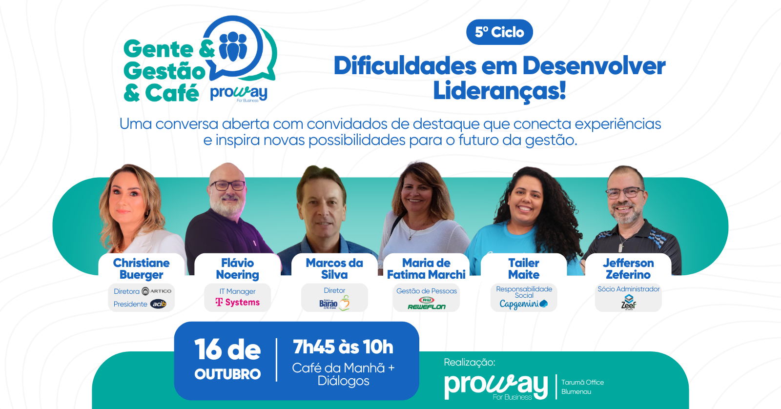 Com o tema “Dificuldades em Desenvolver Lideranças: Uma conversa aberta que conecta experiências e inspira novas possibilidades para o futuro da gestão”, o evento promete reunir gestores e especialistas para um debate rico em experiências e aprendizados práticos.